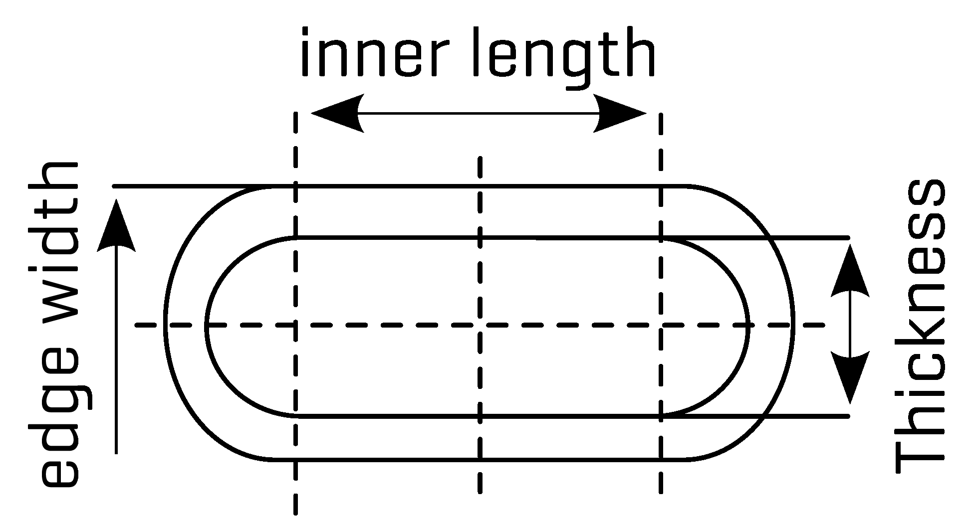 The dimensions of oval gaskets are always defined by 4 dimension information and specified as follows: small inner oval [A] × large inner oval [B] × edge width [b] × thickness [t]